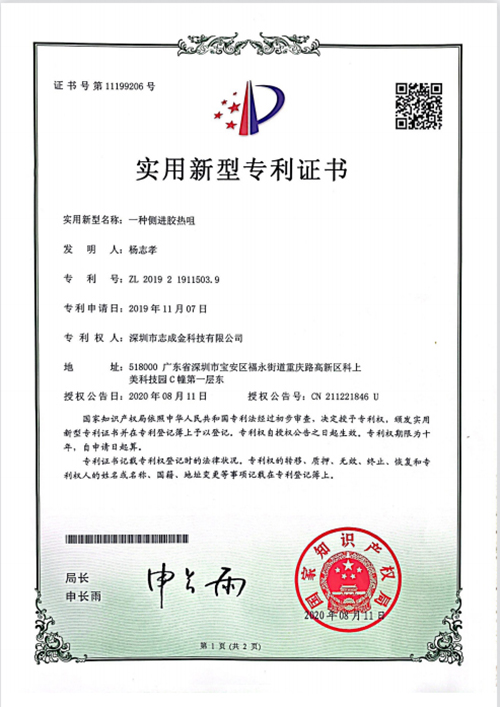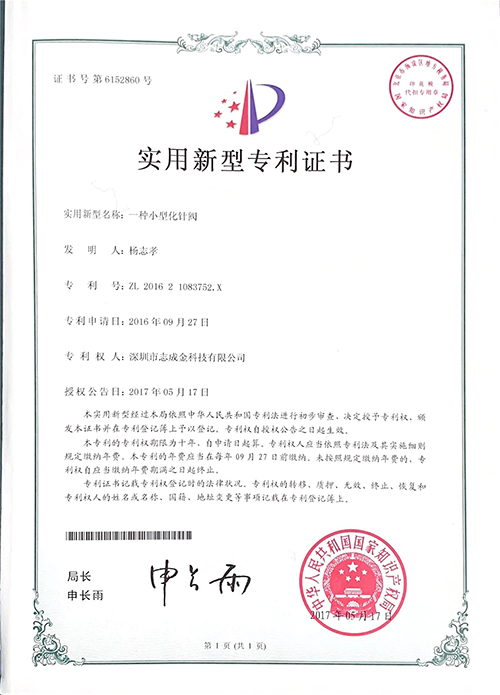 實用新型專利證書